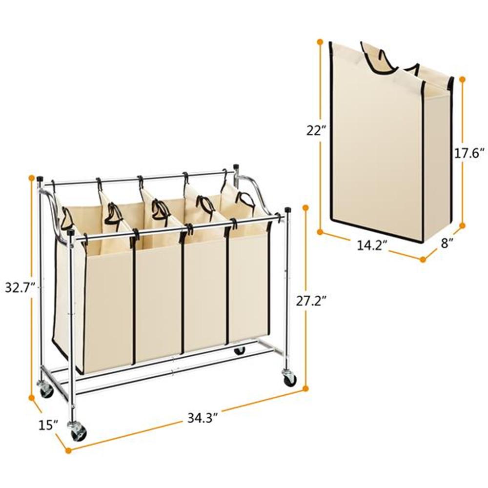 BIG CAPACITY - The laundry sorter can carry all your dirty clothes even when the bags are filled up to the top. You wouldn't have to worry about unloading the laundry sorter hamper several times a week due to its big capacity and multiple bag design.